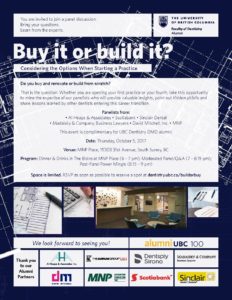 We have met and enjoyed working with over 100 dentists, and have been involved first-hand in the setup of many of their operations. This means we must recognize the value in a vision for the building process that involves the most economically feasible and sustainable solution. On October 5th, 2017 our president and CEO will share his 30+ years of experience on this matter to discuss the pros and cons of buying and renovating a practice versus building it from scratch at ubc.eventsair.com.